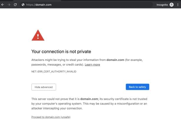If a site displays a warning that the connection is not private and a note that the certificate is untrusted and does not have a valid certificate, it is a kind of fake website and unsafe to open.