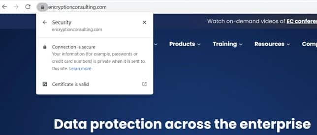 If you would look at the image below shows what a secured website will look like. When you visit a secure website, there should always be a lock in the URL bar of a modern browser. The lock will reveal more information when you click on it, including a statement confirming the site’s current certificate.