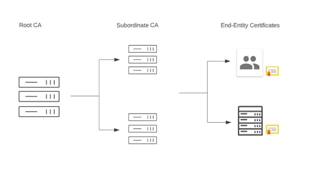 The CA hierarchy is one crucial component that supports the overall idea of the certificate authority. In essence, this indicates that CAs exist to confirm the legitimacy of and issue certificates to another certificate authority. The two most common Hierarchies include Two Tier and Three Tier CA Hierarchies, as more tiers can cause more complexity.