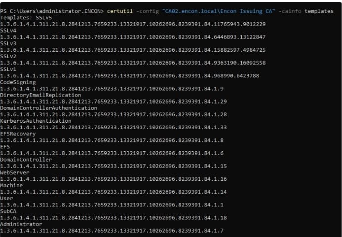 This will present you with all the templates available on this Certification Authority. This data is pulled from the domain controller, and so is the data that is displayed to the users.