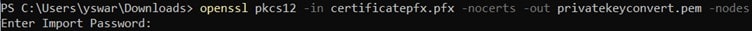 openssl pkcs12 -in certificatepfx.pfx -nocerts -out privatekeyconvert.pem -nodes