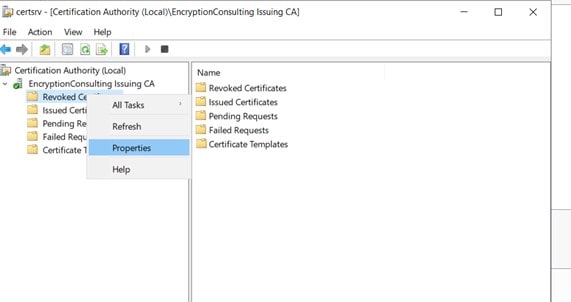 Right-click on Revoked Certificates and open properties.