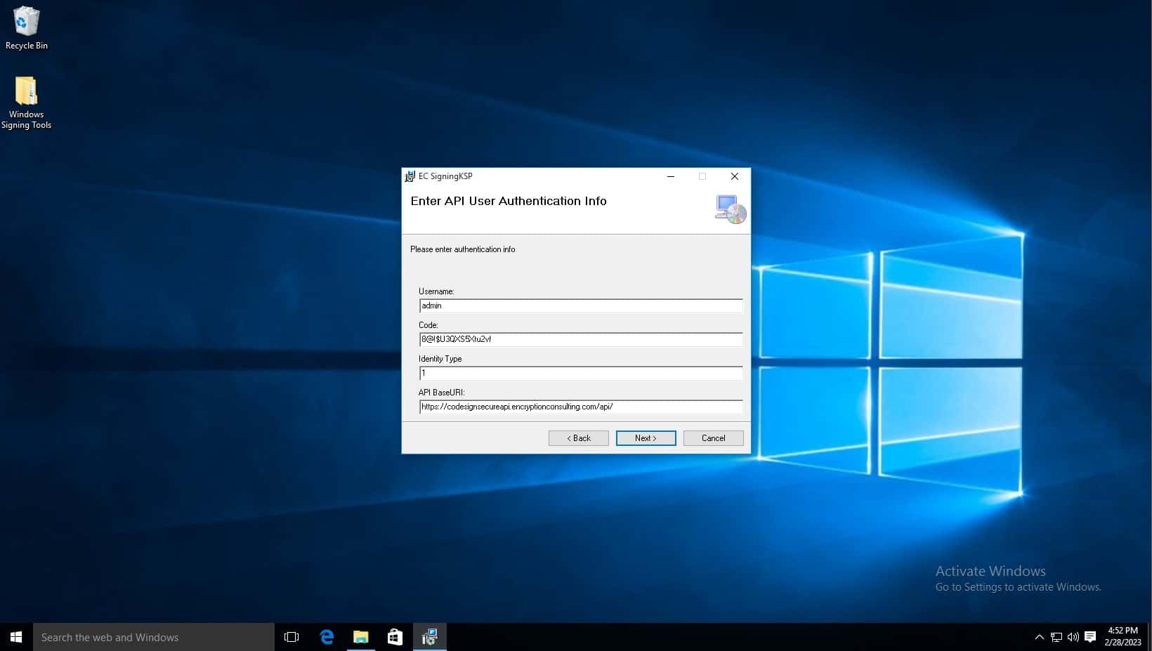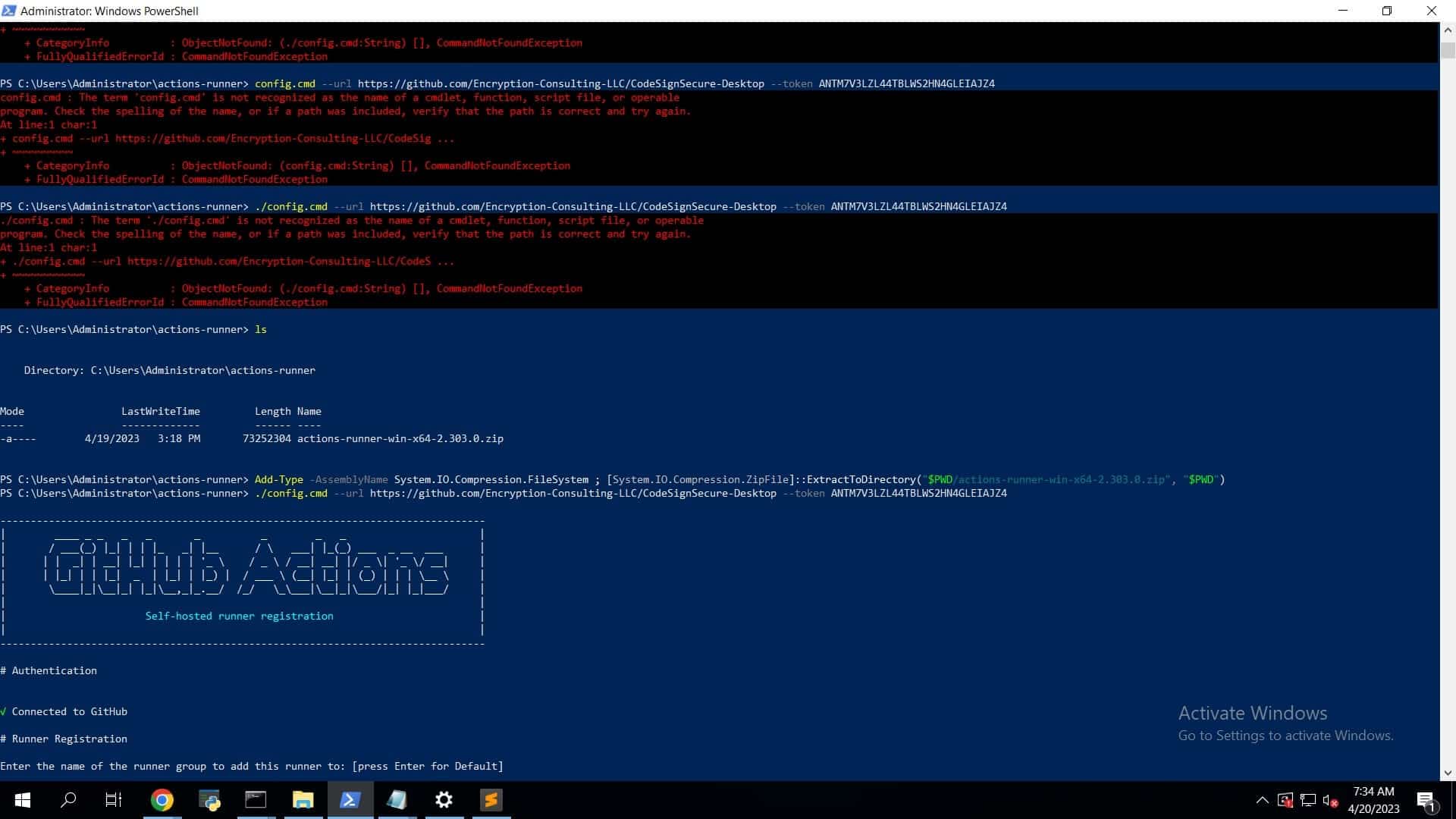- ./config.cmd –url https://github.com/Encryption-Consulting-LLC/CodeSignSecure-Desktop –token <token_number>