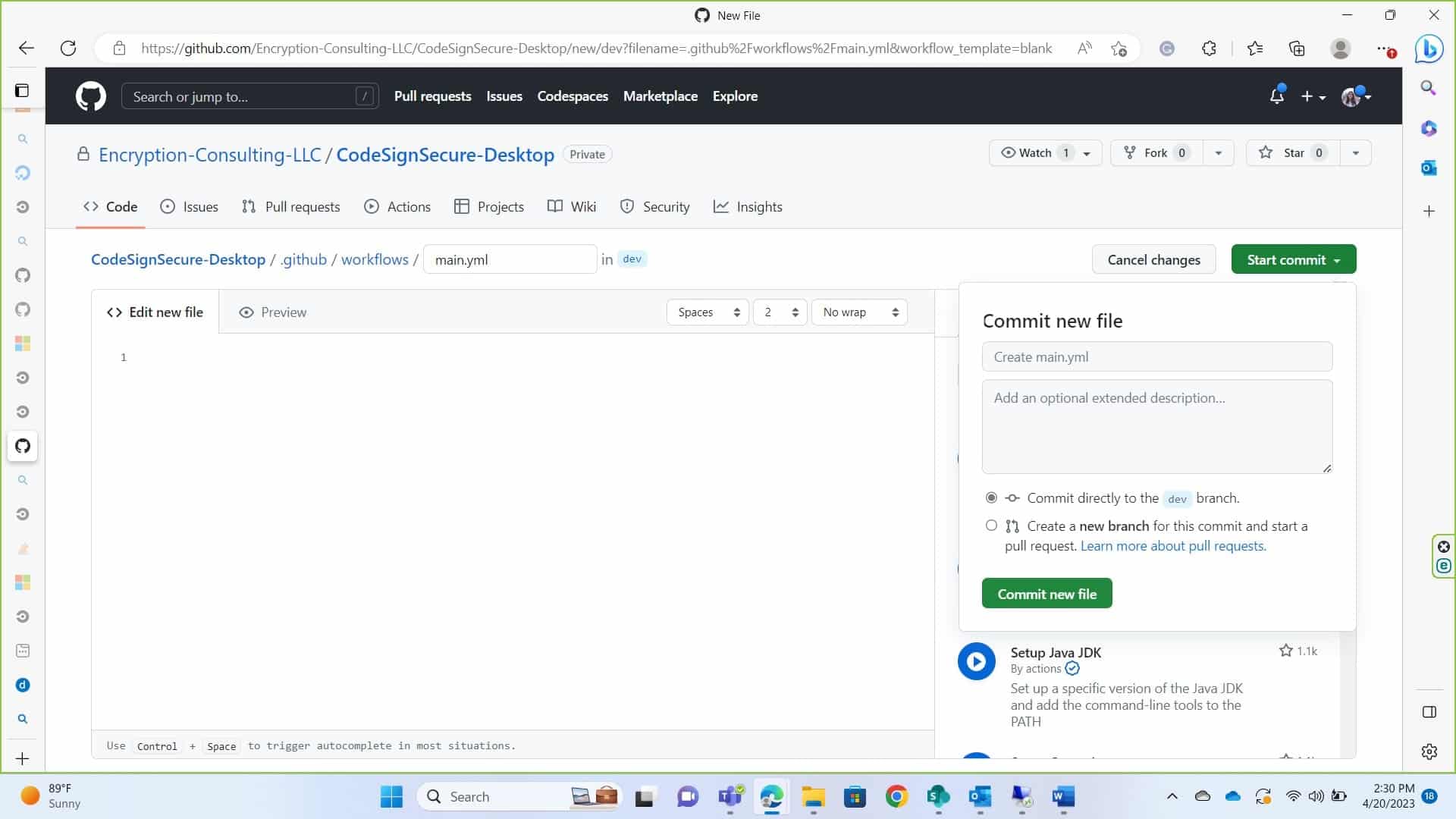 We can perform codesigning using GitHub actions. For this, we create a workflow in our desired repository in GitHub and perform codesigning using the script.