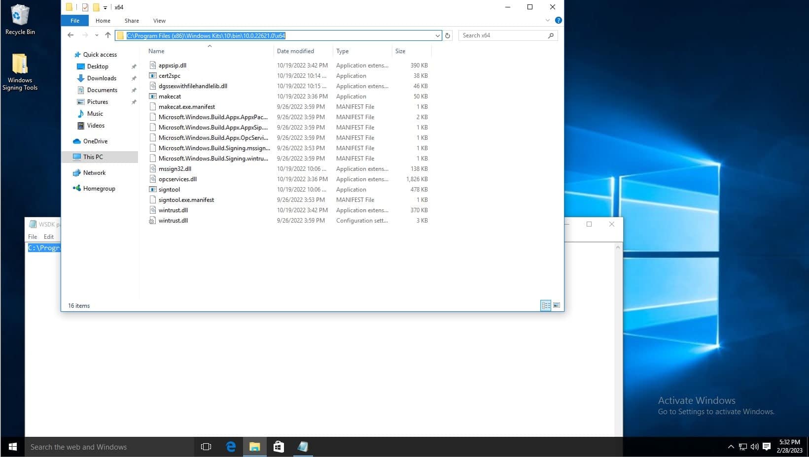 Before editing the variable list, navigate to where the Windows SDK is installed to using file explorer, you must copy the path of the folder which contains the signtool application, the default path is C:\Program Files (x86)\Windows Kits\10\bin\10.0.22621.0\x64, refer to the below screenshot. Make sure to right click and copy the path as shown. You can also see the signtool application at the bottom of the file list, this is the command you will run.