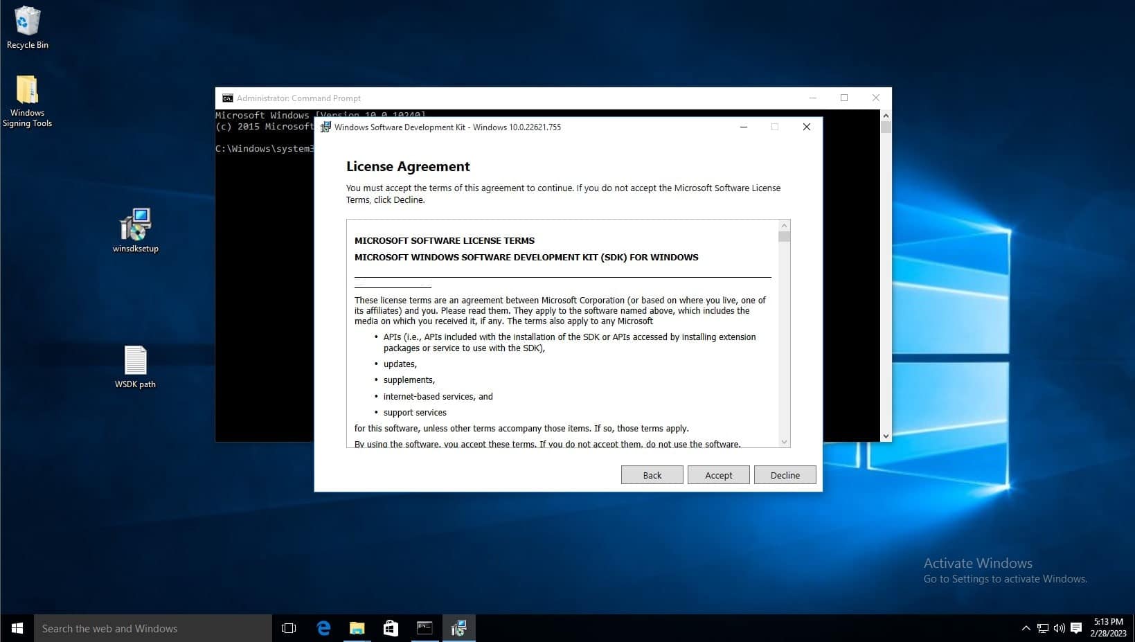 Open the winsdksetup.exe file. Remember the default path shown in the install path, as this will be helpful with running these commands from the command prompt.