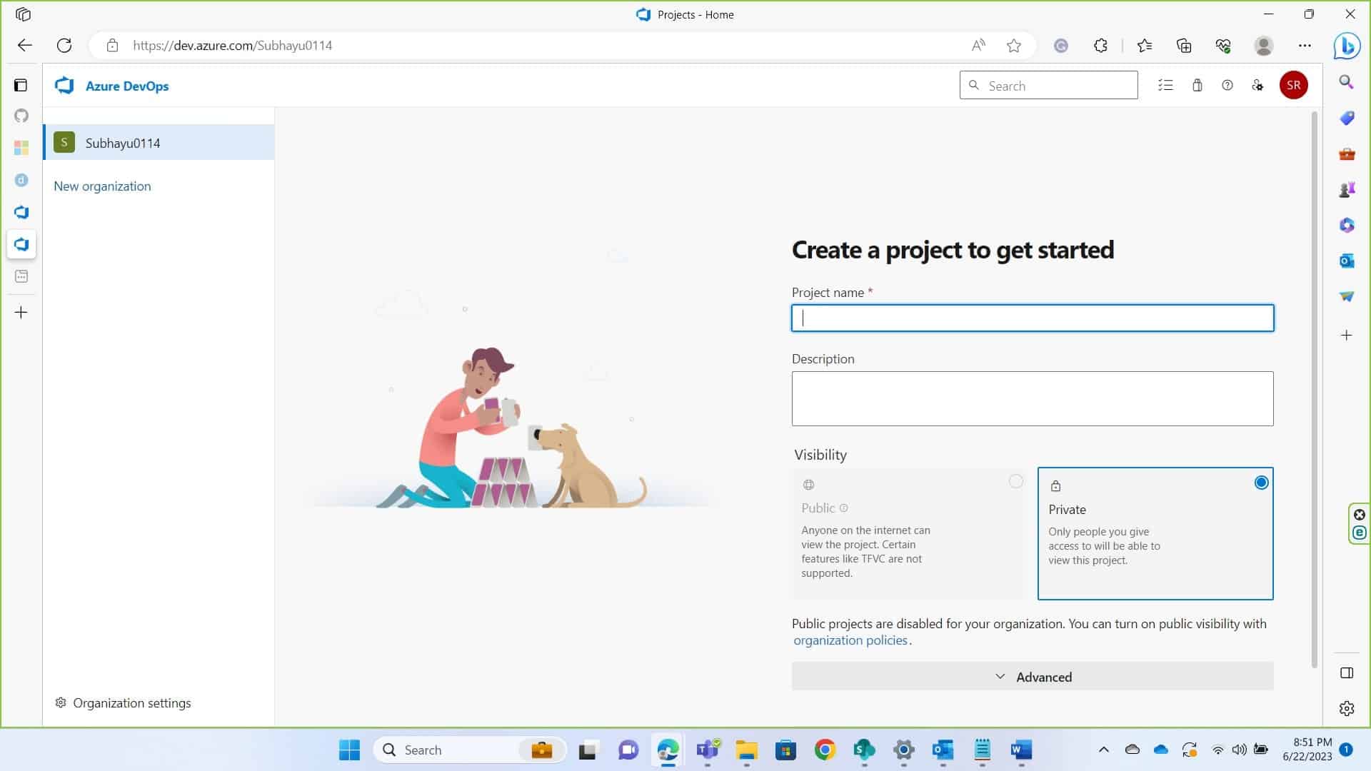 - You’ll be asked to create an organization if you haven’t already. Create a organization and get started with the project.