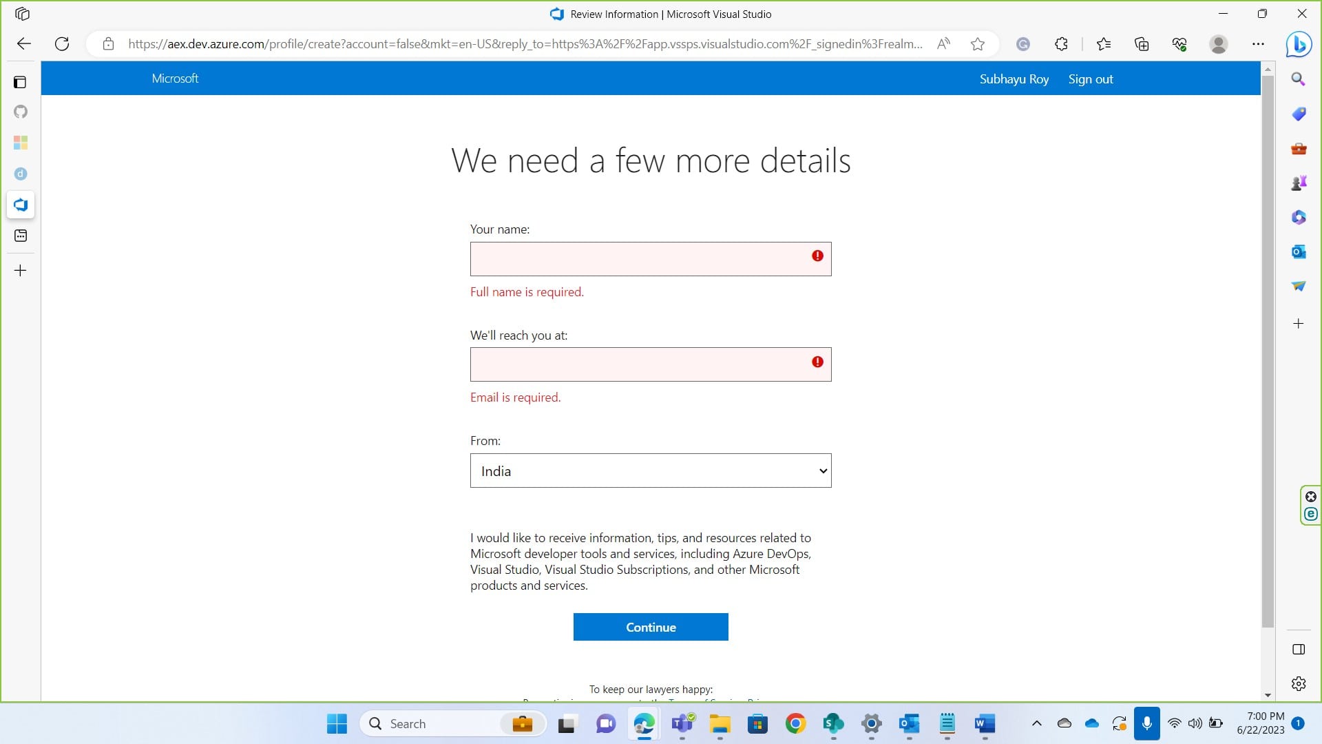 - Navigate to dev.azure.com and sign in with your Microsoft account or you can start free with your GitHub Account too