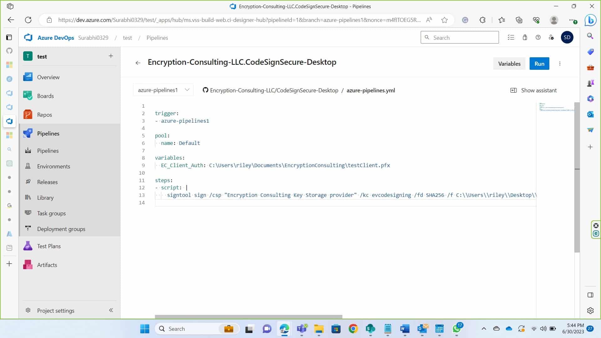 The article above demonstrates the process of integration your Azure Devops CI/CD pipeline with codesigning. It is a very simple process as you’re just required to set up a runner, connect it with an Azure Devops account and build the pipeline to run the job. Codesigning is crucial in today’s date as malicious software, files continue to grow. Code signing establishes trust between software publishers and end-users, assuring them that the code has not been compromised or altered. You can contact us at info@encryptionconsulting.com for any help regarding our code signing solution.