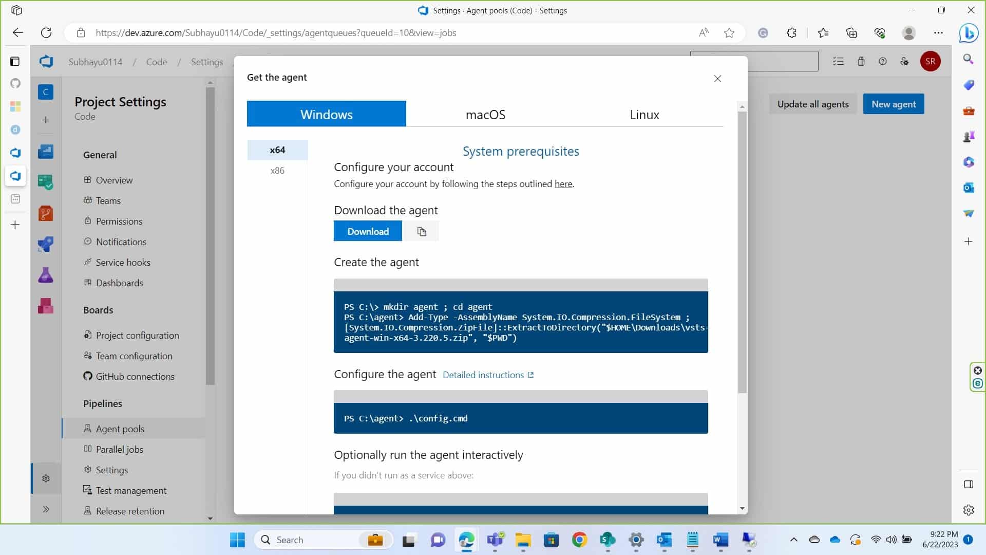 Get the agent as per your operating system. I am proceeding with windows. Download the agent, extract it to a folder “C:\agents”.