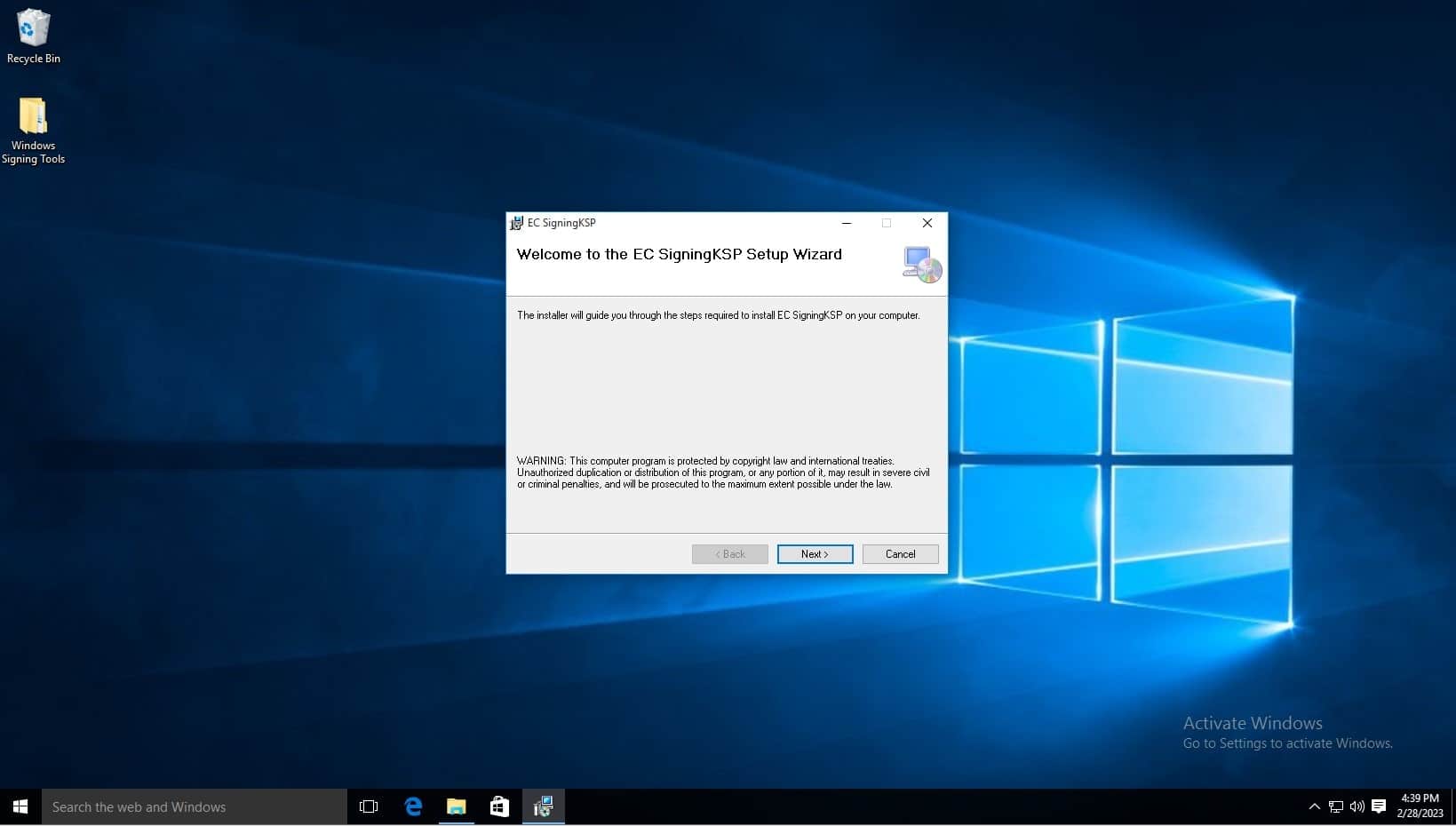 To set up the ECSigningKSP and Signtool, go through the following steps:
