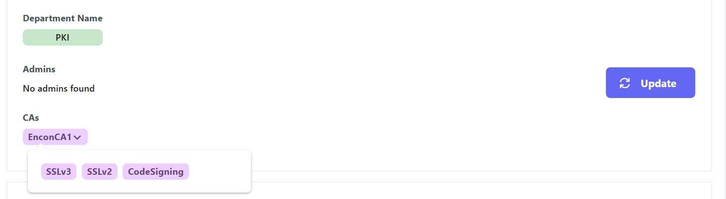 Moreover, we can also define which department gets access to which templates, which creates further restrictions on what templates a user can access. So, for example, the production team will need access to DigiCert, which the development team will not. Similarly, the IT team may need access to web server templates, while they would not need codesigning certificates.