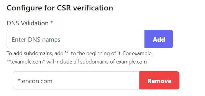 - What domains should be allowed as SAN attributes in the certificate?