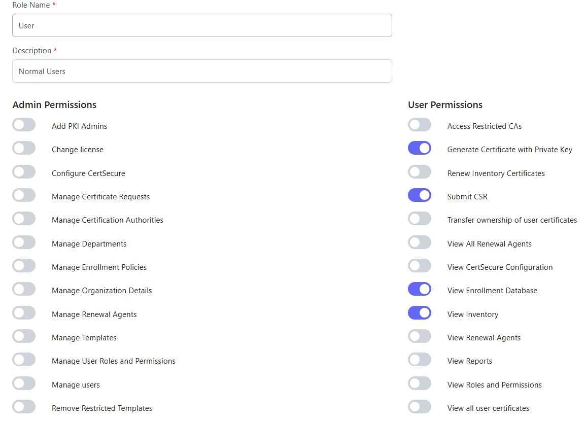 With policies defined, clients can also define roles that can be assigned to the users. Users can then conduct functions that are only defined by the permissions that are set by the administrator.