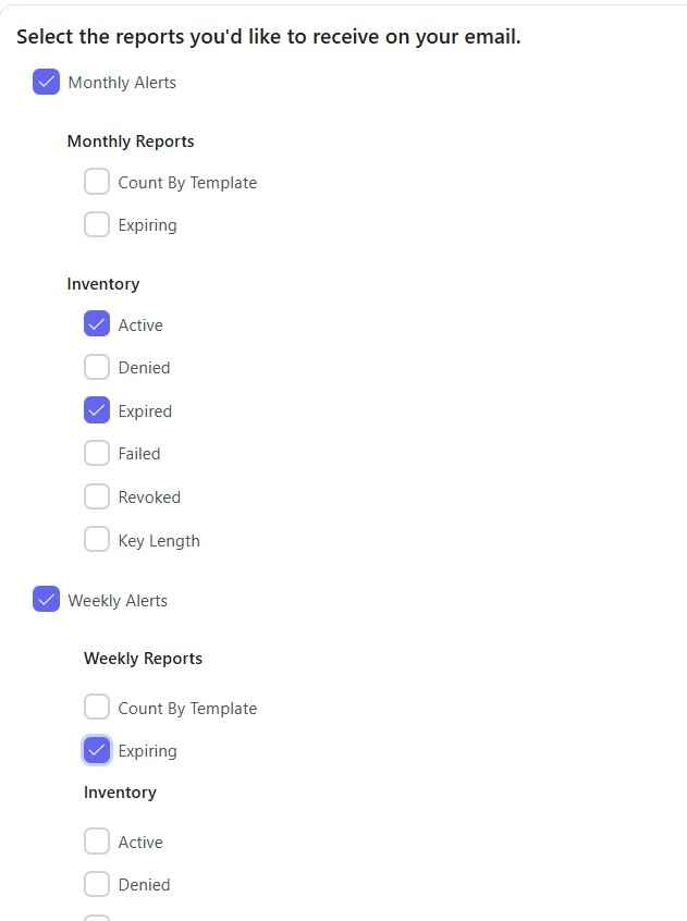 With CertSecure, users can schedule reports that will be delivered directly to their emails in a weekly or monthly manner. This will ease the operational side of things as well as provide visibility and a record of operations conducted by the PKI.