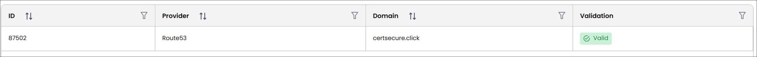 - CertSecure automatically initiates the domain validation process with your provider. Depending on the vendor, auto-validation can take 1-3 minutes.