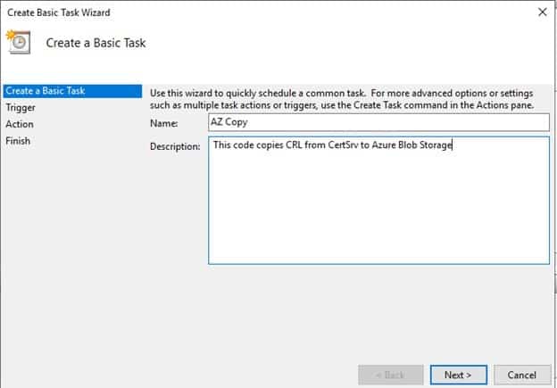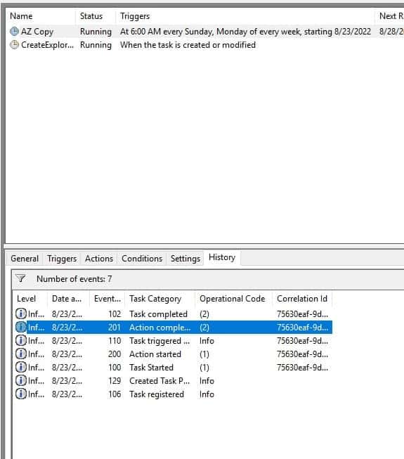 Once completed, AZ Copy should be available in Task Scheduler Library.