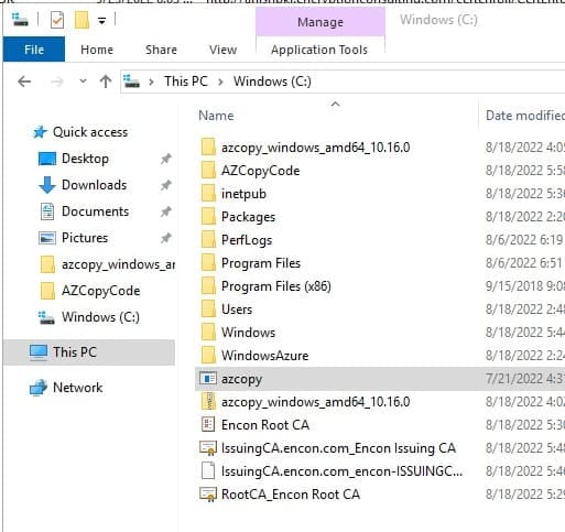 Before we begin, we need to download AzCopy. Once downloaded, extract the app into C:\ to be accessible. We will be using this location on our script. Change the script’s path if you intend to store the application in a different location.