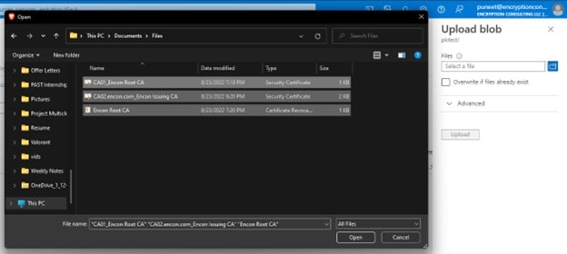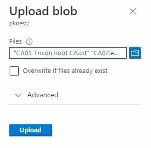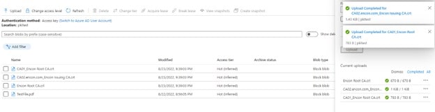 Uploading Certificates and CRLs to the Blob storage