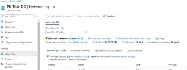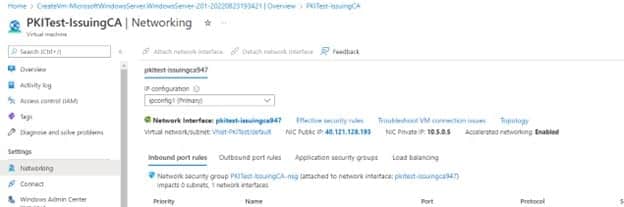 Once the VM is created, navigate to Networking under Settings and click on the Network Interface
