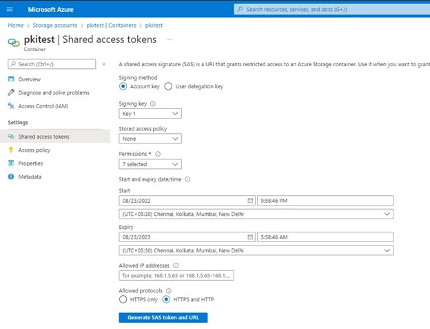 - Click Generate SAS token and copy Blob SAS Token