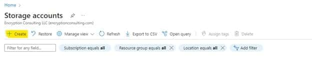 We will be creating a new storage account. So click Create on the top left corner.
