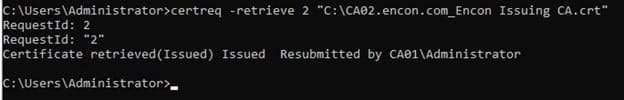 certreq -retrieve 2 "C:\CA02.encon.com_Encon Issuing CA.crt" -
