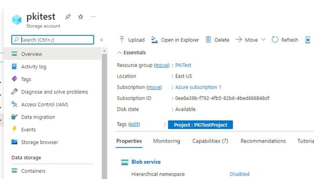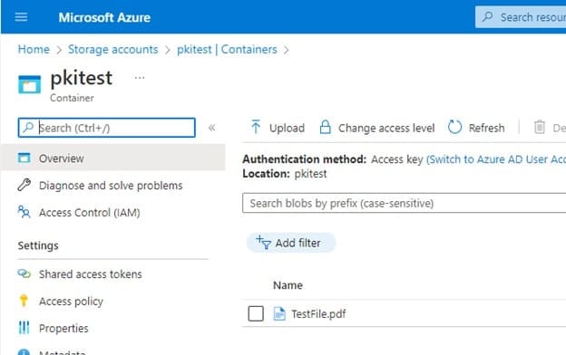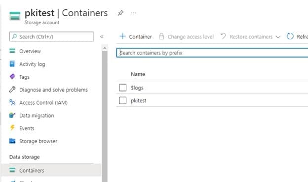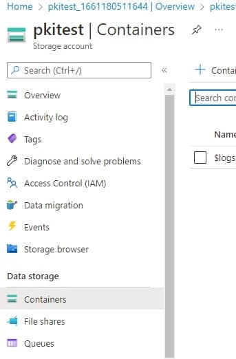 Navigate to the storage account, and click on the pkitest you created