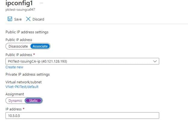 Click on ipconfig1 on the menu and change IP private settings to Static from Dynamic