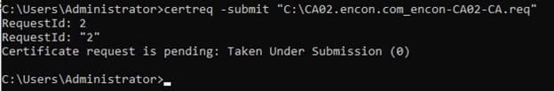 certreq -submit "C:\CA02.encon.com_encon-CA02-CA.req" -