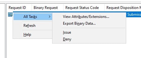 Right Click on the RequestID that you got while submitting the request, click All Tasks, and click Issue