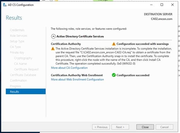 This concludes our AD CS installation with Azure Blob Storage. It is easier to manage, but we also achieve high availability using Azure’s Blob Storage. This will help organizations create PKI that can be operational worldwide with minimal latency and high performance no matter where you are. If you face any issues, do remember to reach out to info@encryptionconsulting.com