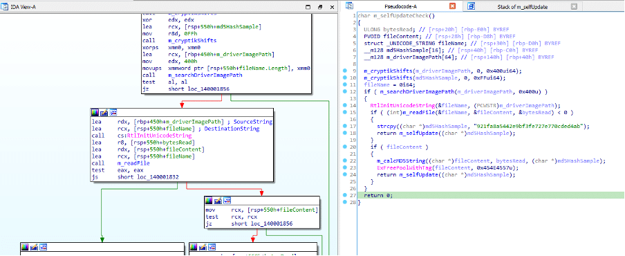 The G Data researcher, Hahn, spent quite some time sufficiently analyzing the driver, and the result concluded that this driver has self-update functionality. According to him, the sample has a self-update routine that sends its MD5 hash to the server through “hxxp://110.42.4.180:2081/v?v=6&m=”.