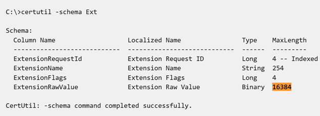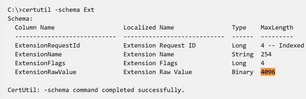 Earlier versions of ADCS imposed a 4KB size limit on certificate extensions, restricting the complexity of certificate metadata and policy information that could be embedded within the certificate.