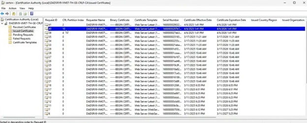 - Anomaly detection, such as spotting suspicious SAN values or unauthorized issuance of high-privilege templates (e.g., Domain Controller certificates)