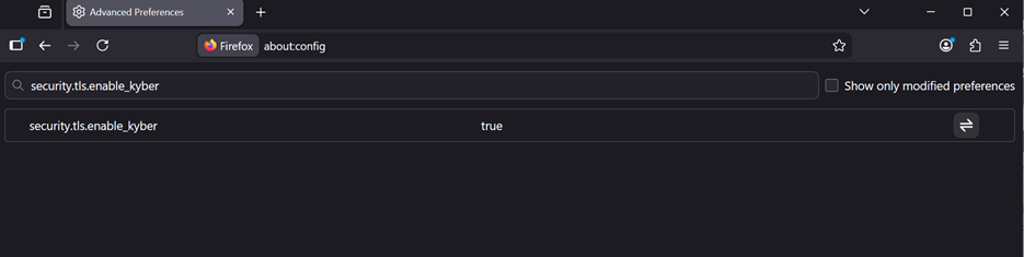- After restarting, Firefox will attempt hybrid TLS handshakes using Kyber or ML-KEM when connecting to servers that support PQC.