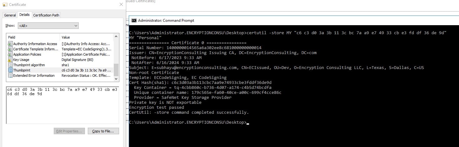 CSP/KSP Registrations Can Fail if Windows Update is missing as it includes a step that verifies the DLLs are signed by Thales’ certificate that chains back to the DigiCert root of trust G4 (in compliance with industry security standards).