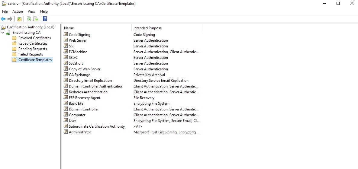 - Issue the Template: The new template is now available but needs to be issued before it can be used. In the Certification Authority console (`certsrv.msc`), right-click `Certificate Templates,` select `New,` then `Certificate Template to Issue,` and select your new template.