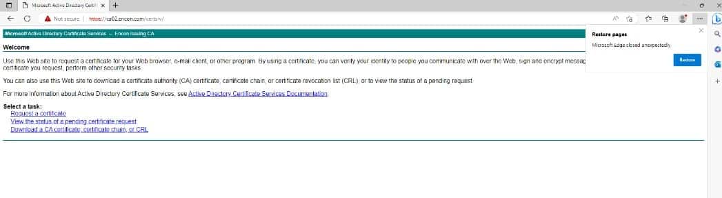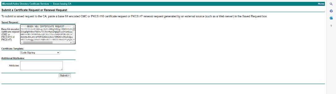 Now, perform the Web Enrollment after selecting a template – “Code Signing.” (in our case – https://ca02.encon.com/certsrv/)