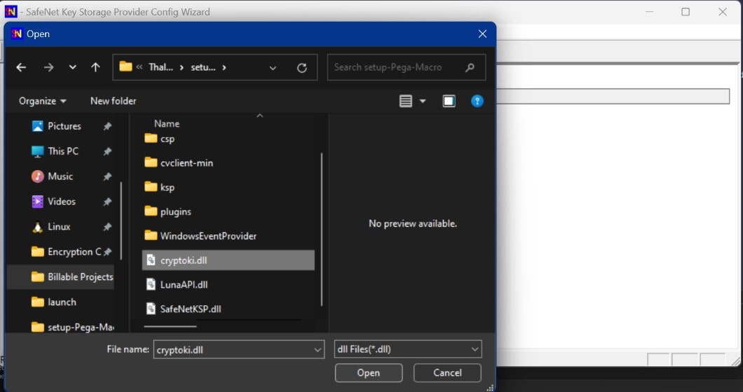 Click Browse. Select the cryptoki.dll file from the Luna Cloud HSM Service Client.