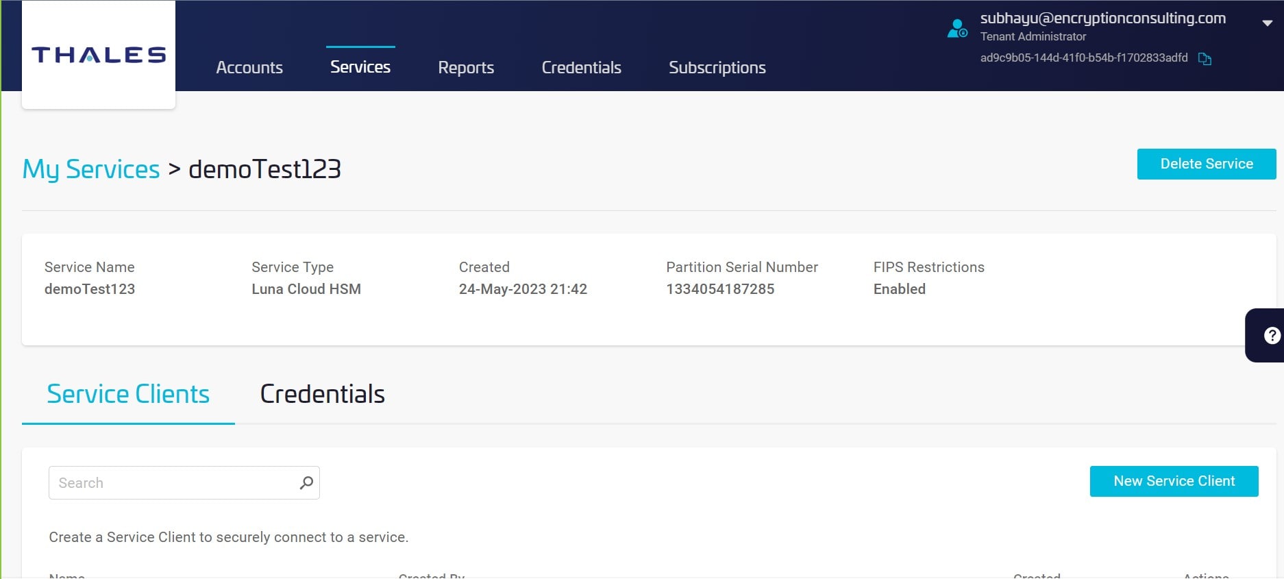 Access the Service Page and click the service or the partition name you want to generate a client.