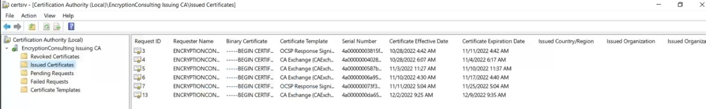 In the console tree, expand CAName and click Issued Certificates